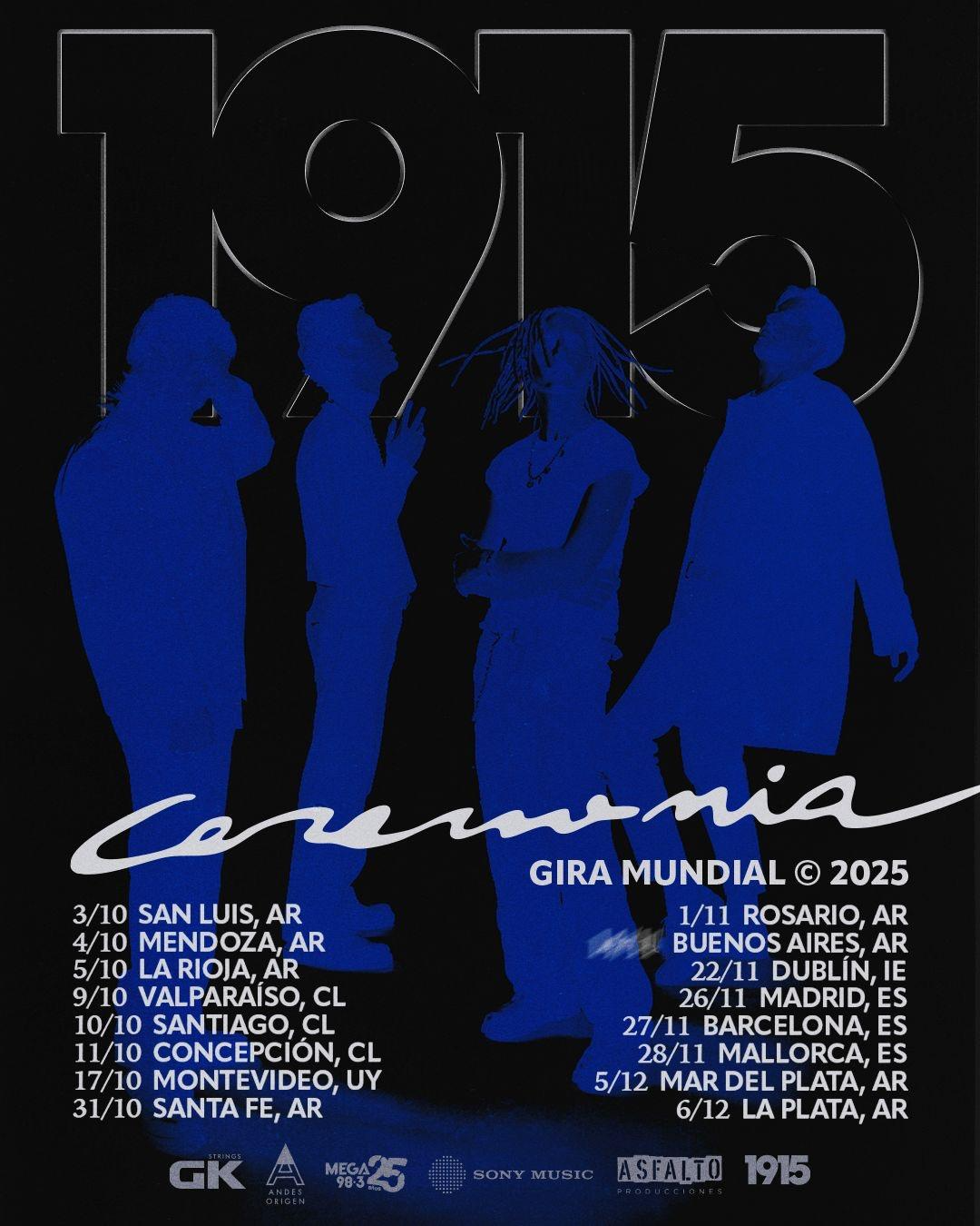 En este nuevo trabajo, 1915 combina su costado más pop y sintético con la fuerza contestataria y el nervio rockero que los caracteriza. Entre lo íntimo y lo político, entre lo emocional y lo comunitario, Ceremonia reafirma a la banda como una de las propuestas más potentes y necesarias de la escena argentina actual.
