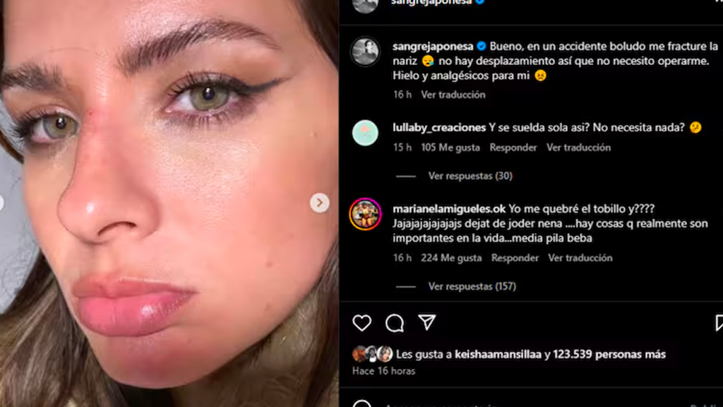 Al ver estas imágenes, sus seguidores no dudaron en enviarle mensajes de apoyo para su pronta recuperación. «Ni con la nariz fracturada se te va la cara más hermosa del mundo», «Recupérate pronto, reina. Lo siento mucho» y «¿La nariz se cura sola así? ¿No necesita nada?», fueron algunos de los comentarios que recibió.